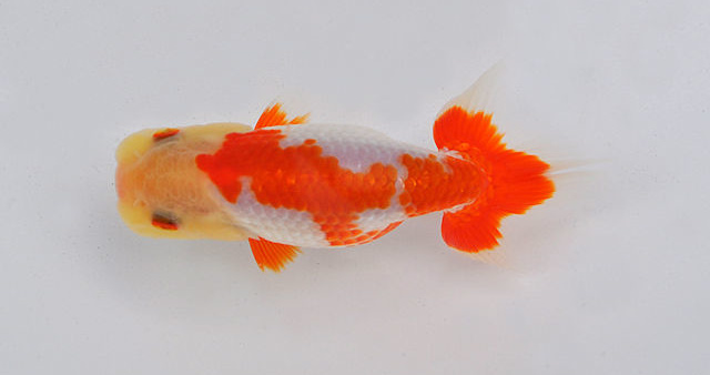 取締1 朝日新聞社賞 横浜 猪越氏持魚 桜吹雪模様が楽しい。将来成長すると洗面器で栄える魚。 |