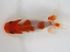 明の部 3位 宮本利行氏 持魚 魚評:かんざし模様ですが、背幅のある魚です。尾形は十分あるので大きく育ててみたいものです。 |