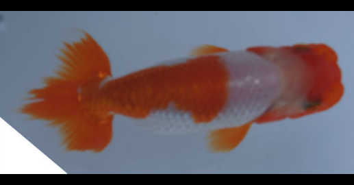 徳の部 4位 片岡氏 持魚 魚評:やや尾筒伸びの感はあるが、柄模様と泳ぎが欠点を打ち消している。 |