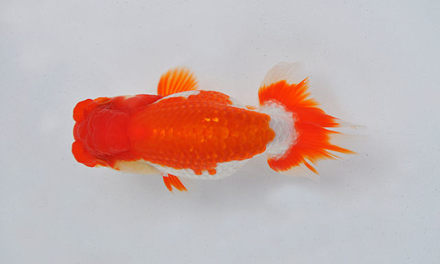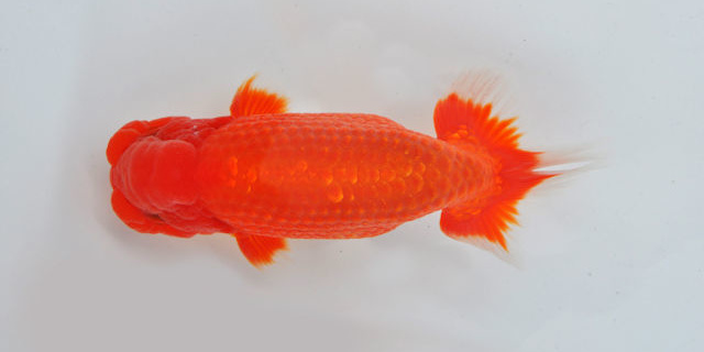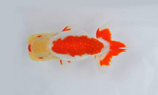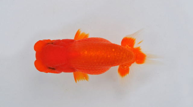 西大関 讀賣新聞社賞 広島 柳川氏持魚 素赤で地味な魚だが、頭部のときんが獅子頭を引き立てている。尾形がよく、バランスがよい。 |