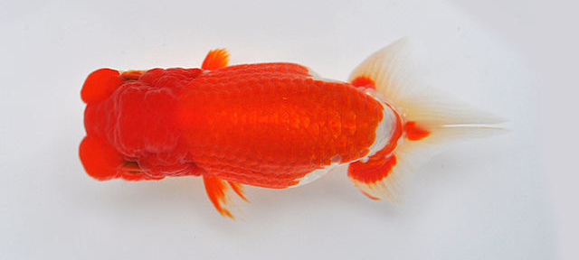 東大関 神奈川県知事賞 横浜 武井氏持魚 口先が白色で愛くるしい魚。背幅が十分にあるので安定感がある。尾部の赤の配色はバランスの良さを感じさせる。 |