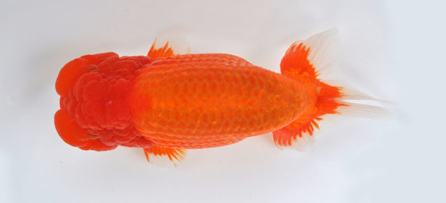 取締2 神奈川新聞社賞 東京 石井氏持魚 かんざし模様の頭であるが、ふんたんがしっかりと出ていて迫力がある。左尾の親骨の白色部分が写真ではやや損をしているが太見のある魚。 |