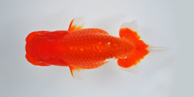 東大関 横浜市長賞 館山 鈴木氏持魚 素赤で小判型。背幅の大きさ、尾筒の太見とも申し分ない。今後、益々頭が発達すれば楽しみな魚。 |