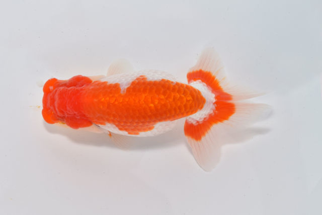 取締1 朝日新聞社賞 館山 鈴木(康)氏持魚 前びれに赤色はないが派手な更紗模様。尾は大きく体幅をおぎなっている。 |