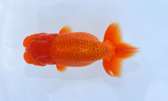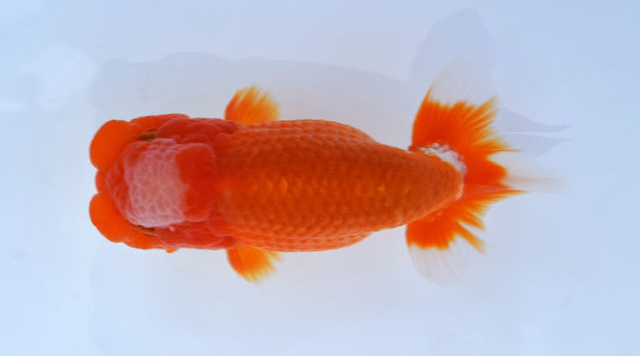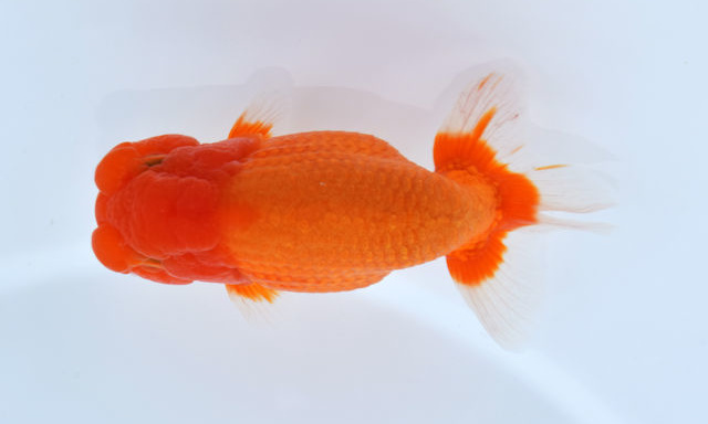 東大関 神奈川県議会議長賞 広島 柳川昭二氏持魚 うろこ一枚一枚が細かく、堀の深さがあって美しい。小判形がいかにもらんちゅうらしい。 |
