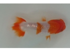 明の部 1位 小松氏 持魚 魚評:筒伸びがなく箱型の体形で、体が白色と美しく研究会用の魚でした。腹を出し過ぎて、尾が負けないように飼育してみてください。 |