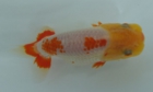 明の部 2位 武井氏 持魚 魚評:白勝更紗魚ですが、体がしっかりとしているため堂々として見えます。うまく黄頭を育てたいものです。 |